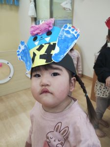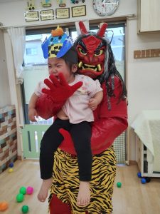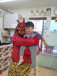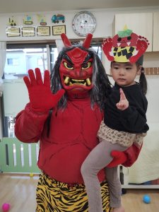 それぞれ可愛いオニのお面をかぶって準備万端です。