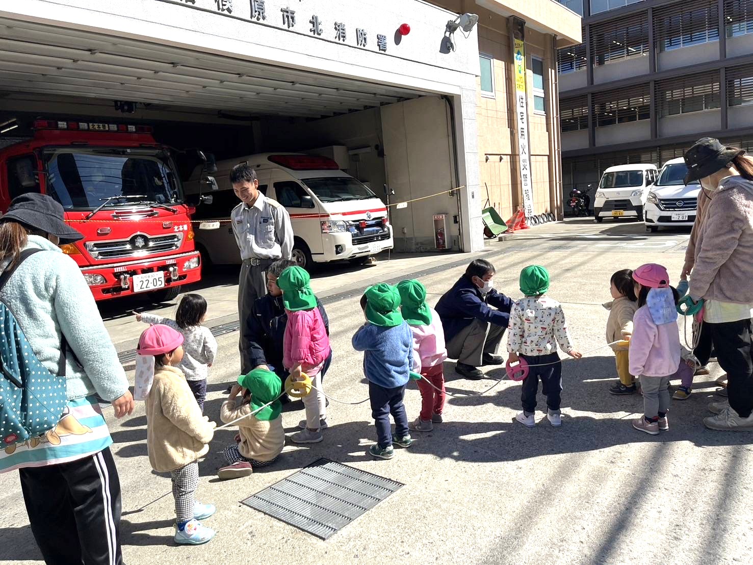 保育園裏に駐車場スペースがありますので、ご利用ください。